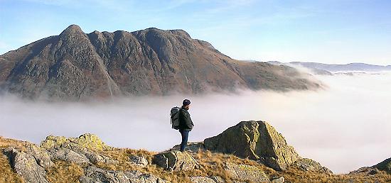 Scafell Pike, just about to disappear in the rising cloud layer.