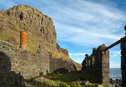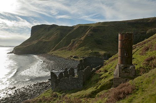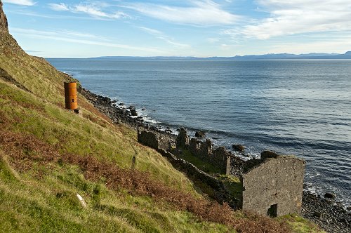 The ruins of the diatomite works at Lealt.