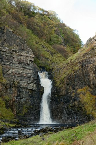 Waterfall on the Lealt River by the diatomite works.