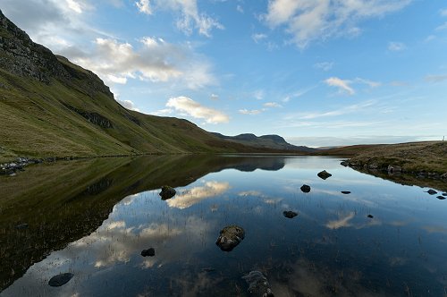Sgurr a'Mhadaidh Ruaidh (the Hill of the Red Fox) reflected in Loch Cuithir.