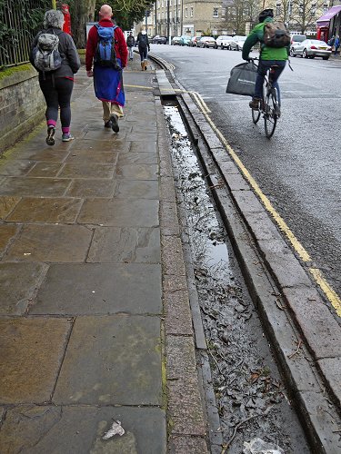 Drainage gutters at the side of the road.