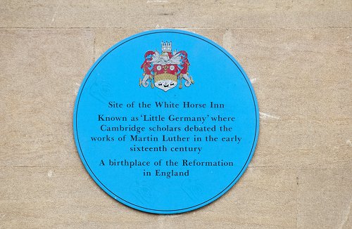Blue plaque on the site of the White Horse Inn -