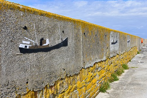 on the harbour wall at Harrow Harbour, near Scarfskerry.