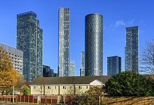 The Deansgate Square apartment blocks over the