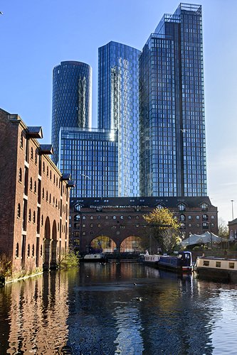 The Crown Square apartment blocks over the Bridgewater Canal