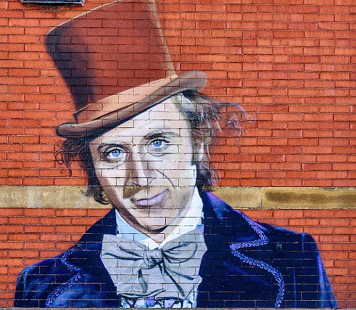 Mural, by Akse P19, of Gene Wilder dressed as Willy Wonka