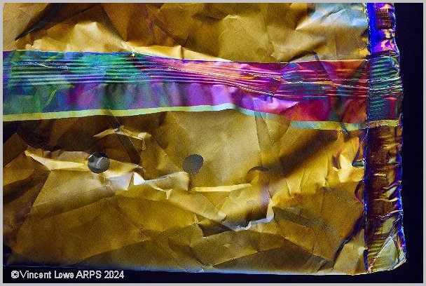 Crumpled cellophane paper between two polarising filters