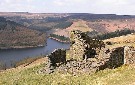 Bleaklow and Derwent reservoir from a ruined farm