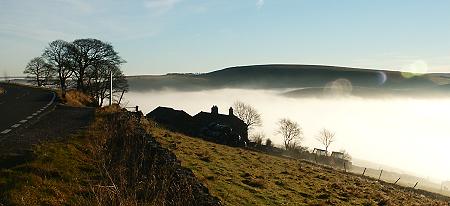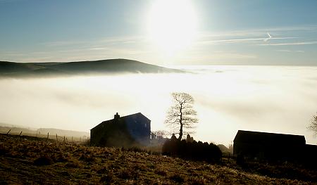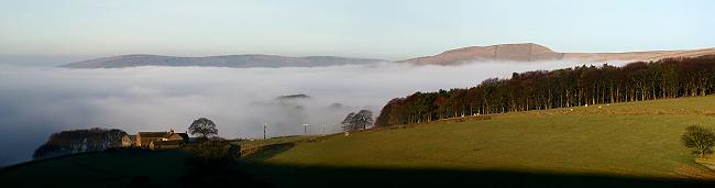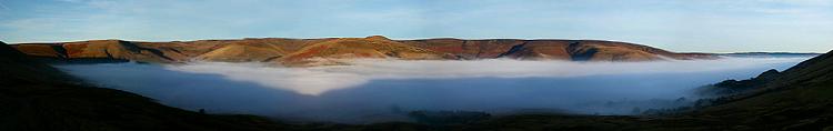 The Kinder Plateau over a fog filled Edale