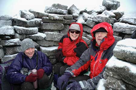 Cross Fell. Very cold with low cloud, snow and strong winds.