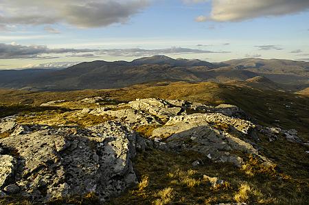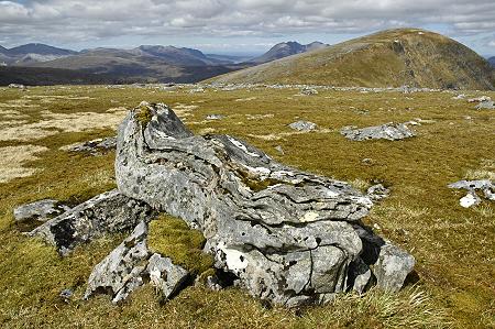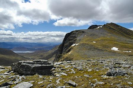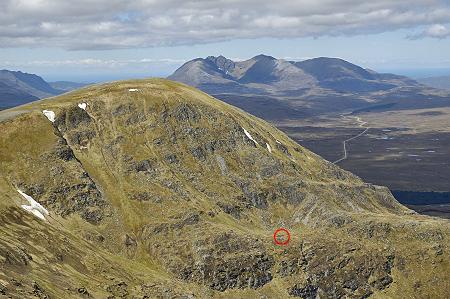 Sgurr Mór with An Teallach behind. The circle shows where we were camped.