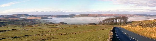 5 Jan 2001 Our sojourn in the Lakes was over and I left for home under dull and cloudy skies. Things were brighter further south though and I took the 'scenic route' back to Manchester, through the Forest of Bowland, where the skies were clear and the valleys filled with mist.