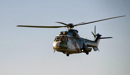 A passing Super Puma AS332L, of Bristow Helicopters