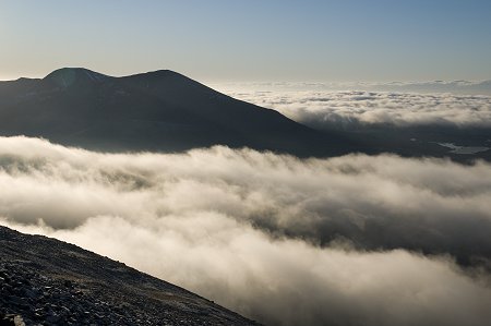 Low cloud flows over the Cranstackie south ridge