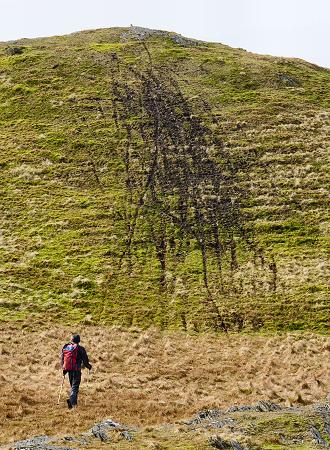 Moel Druman from Allt-fawr, the path churned up by off-road bikers