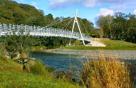 The Millenium Bridge at Machynlleth. The balustrades are by the sculptor Jon Mills. The bridge takes the National Cycle Network route 8 over the river Dovey (Afon Dyfi).