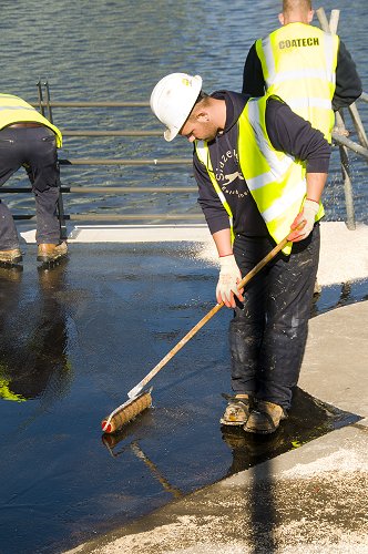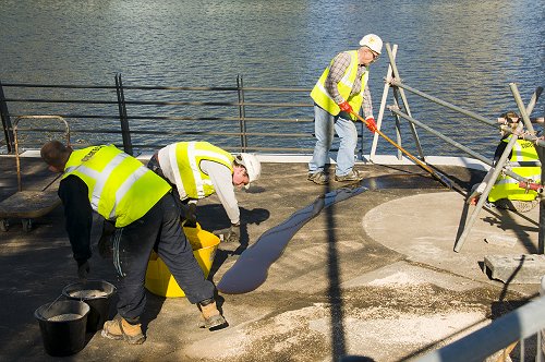 Spreading resin for the surface finish on the new promenade