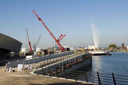 The new swing footbridge nears completion