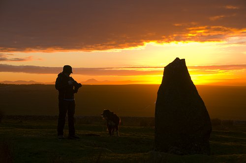 The standing stone on the Hill of Rigifa. Dunnet Head in the distance
