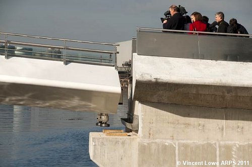 I arrived just in time - the dignitaries and media wait while the bridge closes