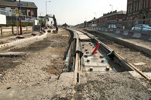 Near the Velodrome stop where the tracks cross Ashton New Road.