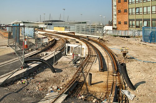 Sportcity-Stadium stop, landscaping and platform section being installed.