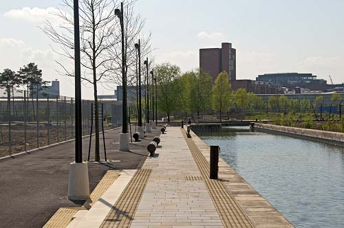 The 'Cotton Field' public realm area of New Islington, nearing completion.