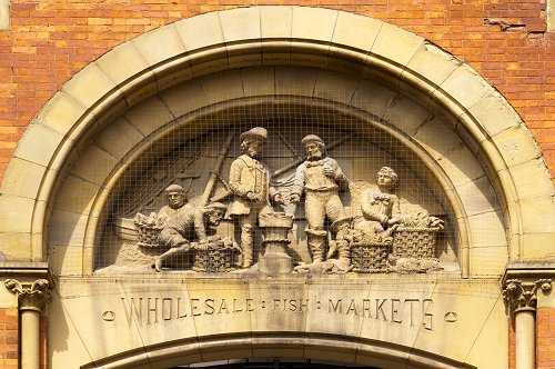 Stone relief on the former Smithfield Market, Northern Quarter.