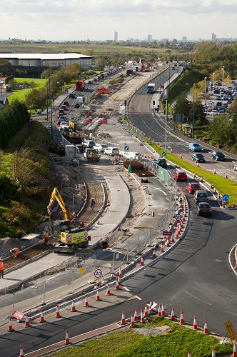 Lord Sheldon Way, Ashton. The tracks run in the central reservation here.