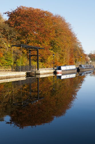 Autumn colours at Frenches Wharf Marina, on the Huddersfield Canal at Greenfield.
