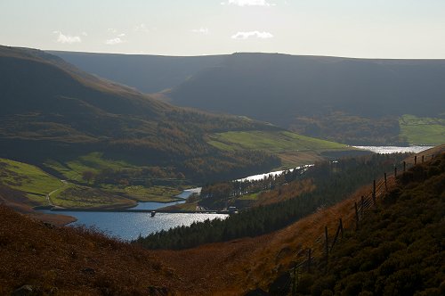 Yeoman Hey and Dovestones reservoirs from Alderman Hill.