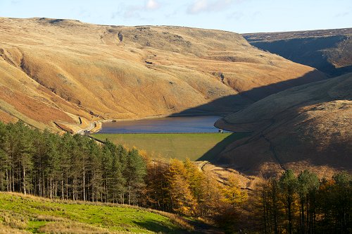 Dovestones reservoir and Alderman Hill.