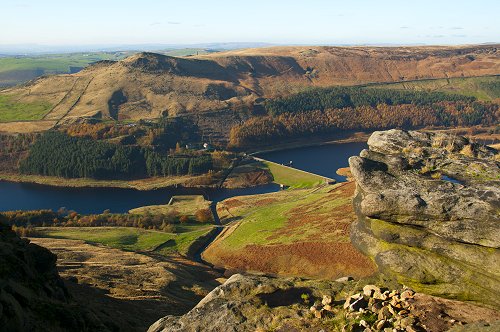 Alderman Hill and the reservoirs from Great Dove Stone Rocks.