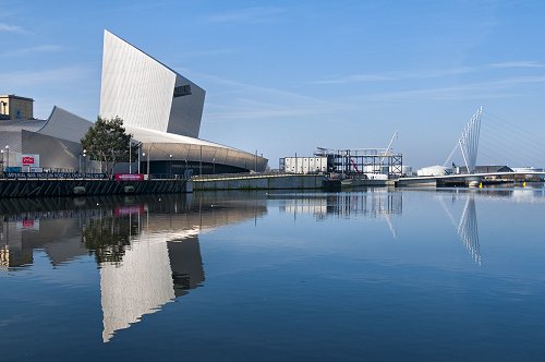 The Imperial War Museum North and the new MediaCity swing bridge.