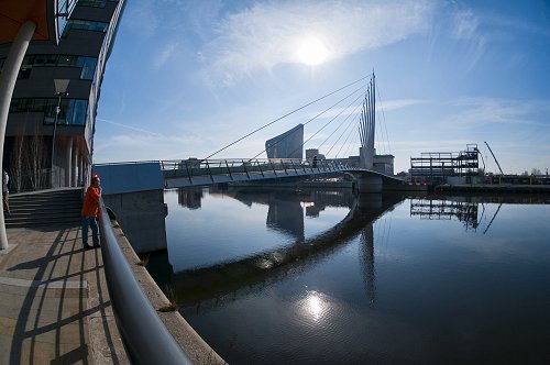 The MediaCity swing bridge. Fisheye lens.