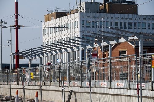 Shelters now being erected at the Droylsden stop.