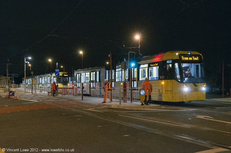 At Edge Lane stop, looking towards Droylsden Centre, Manor Road going off left.