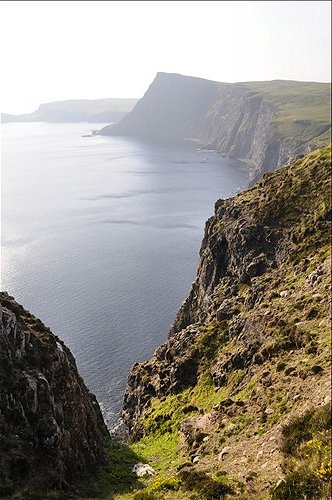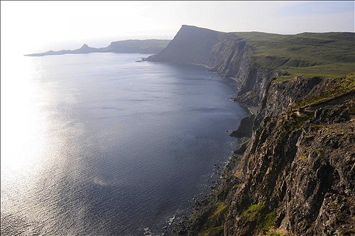 Waterstein Head and Neiss Point with the Western Isles in the distance.