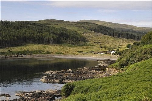 The distant Cuillin Hills from Loch Bharcasaig, Orbost.