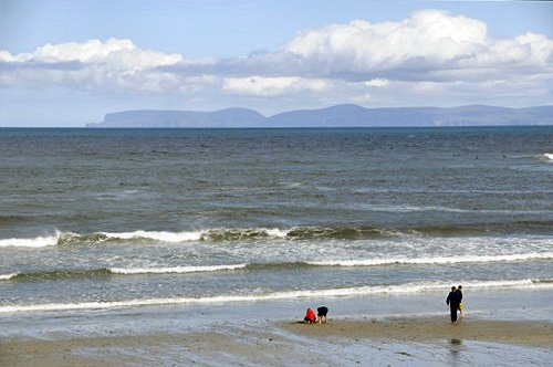 Thurso beach with the hills of Hoy, Orkney, on the horizon.