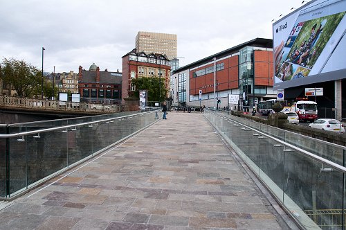 The new footbridge, looking towards the Manchester side of the Irwell.