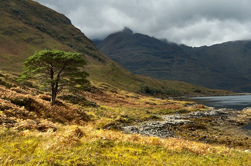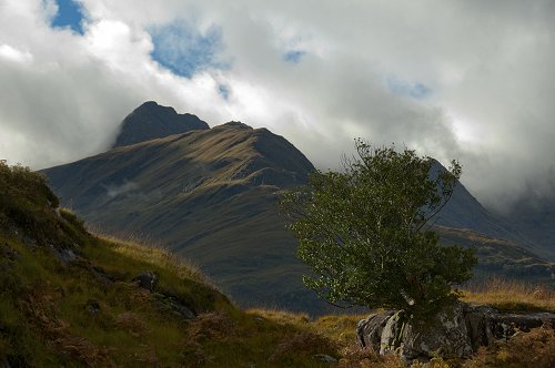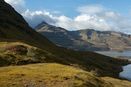 Looking back to Sgurr a' Mhaoraich as the clouds begin to lift.