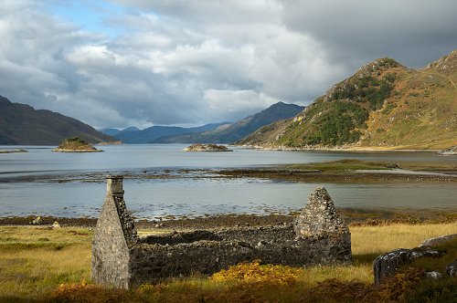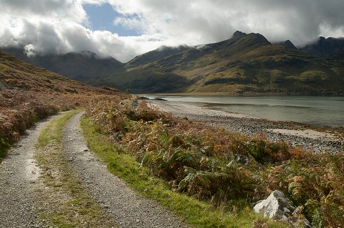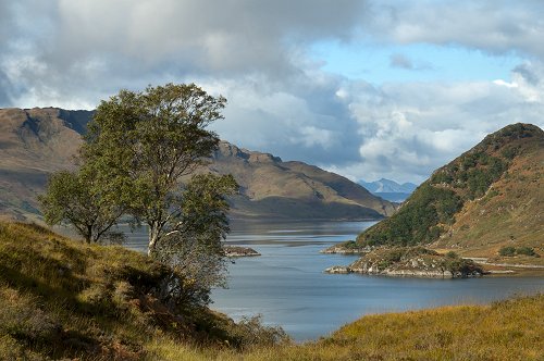 The outer reaches of Loch Hourn with a glimpse of the Skye Cuillins in the distance.