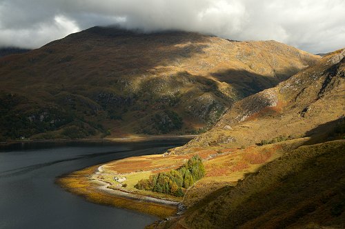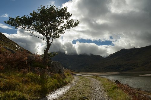 First glimpse of Barrisdale Bay and the peak of Ladhar Bheinn.