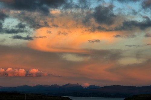 The setting sun lights up the clouds over Torridon.