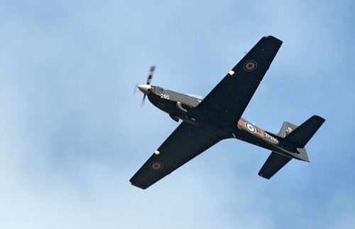 A flying visit from a Shorts Tucano T1 of the RAF.