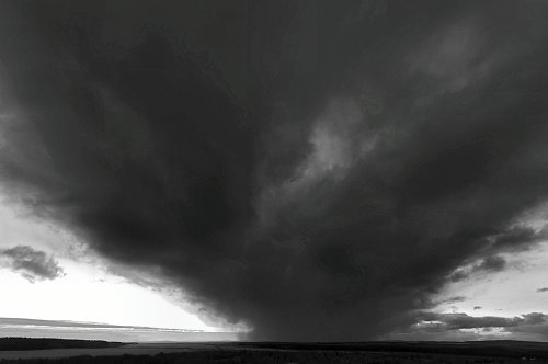 Looking like one of those massive tornadoes that ravage the American mid-west, but in fact just a passing shower.