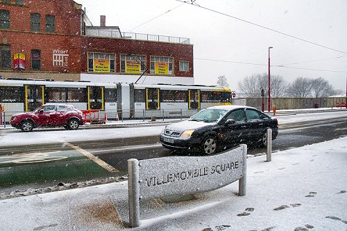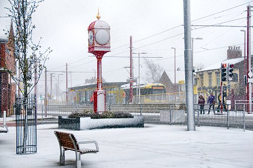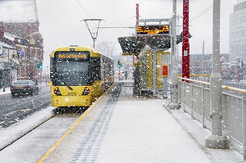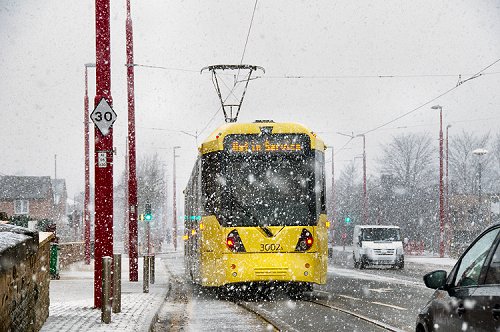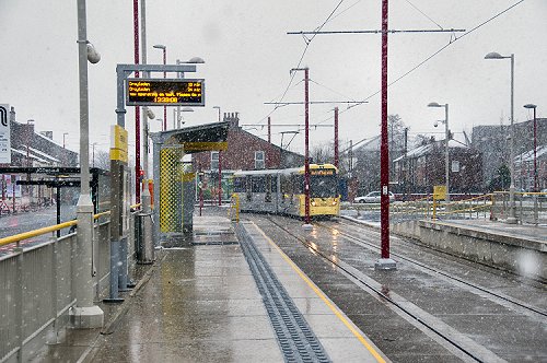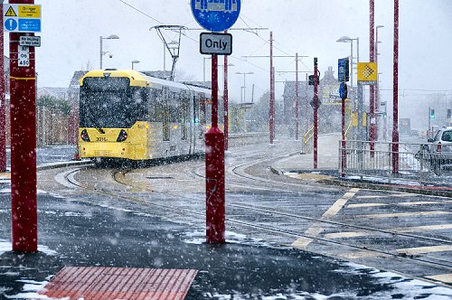 5 Feb 13 Droylsden, more tram spotting. Snow.