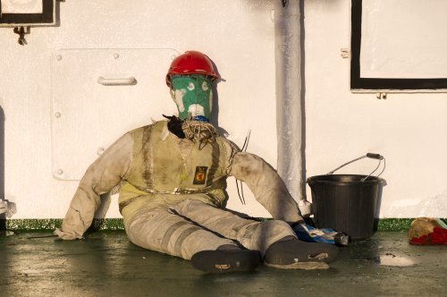 One of the crew takes a break.