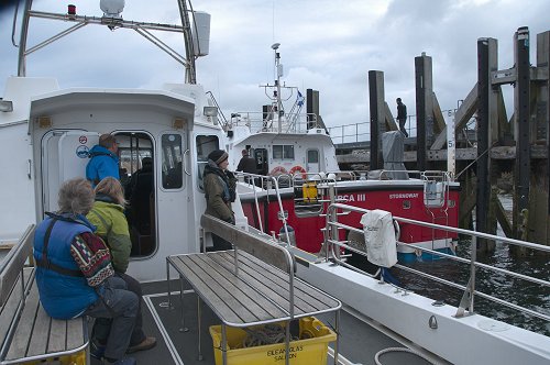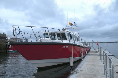 Leverburgh 6:30am, our boat the 'Hirta'.